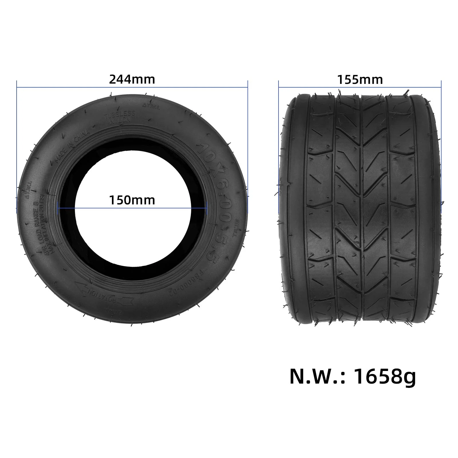 • 10×6.00-5.5 tubeless däck för 6 tum fälg