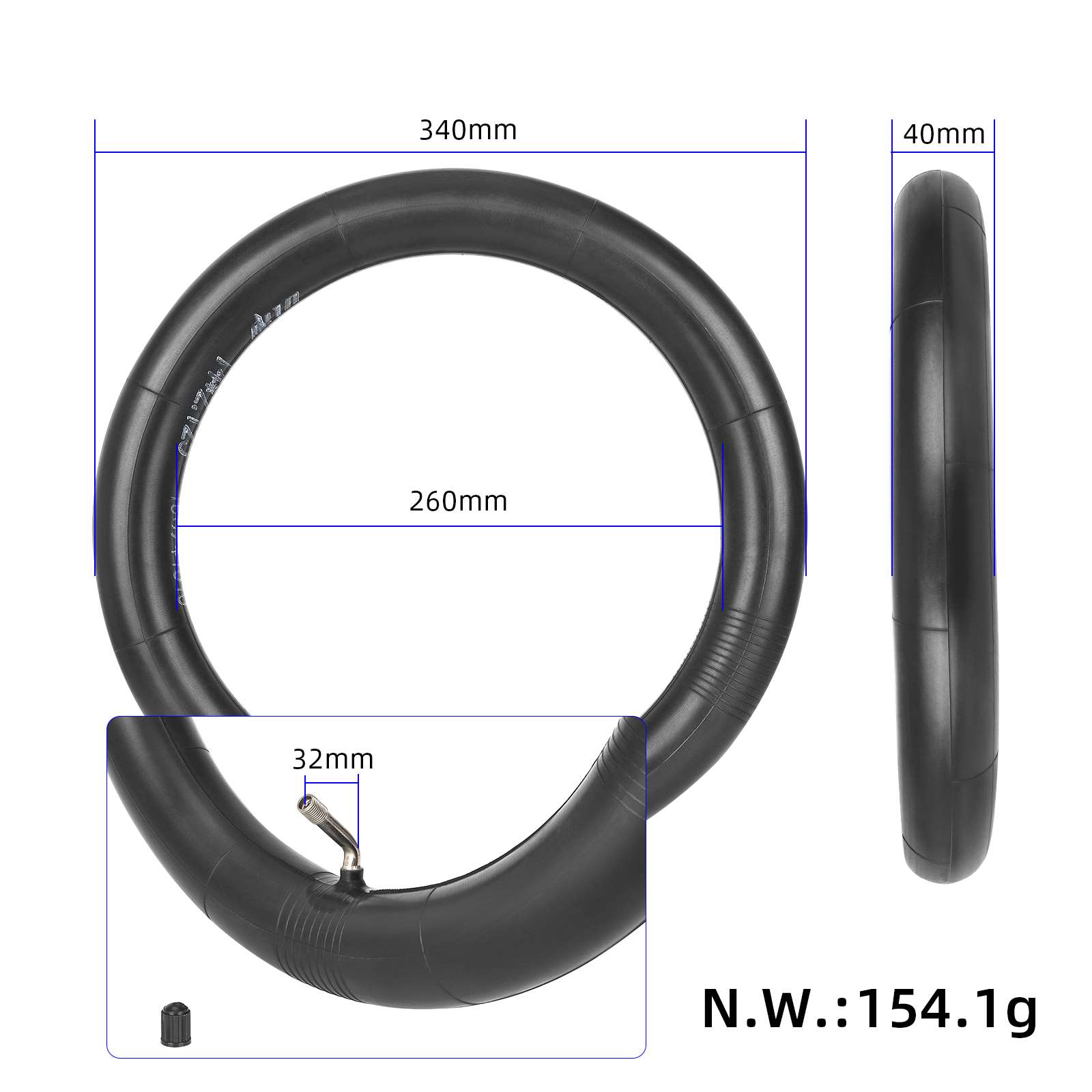 En pålitlig och hållbar 14×2.125 innerslang med 90×75° böjd ventil, anpassad för