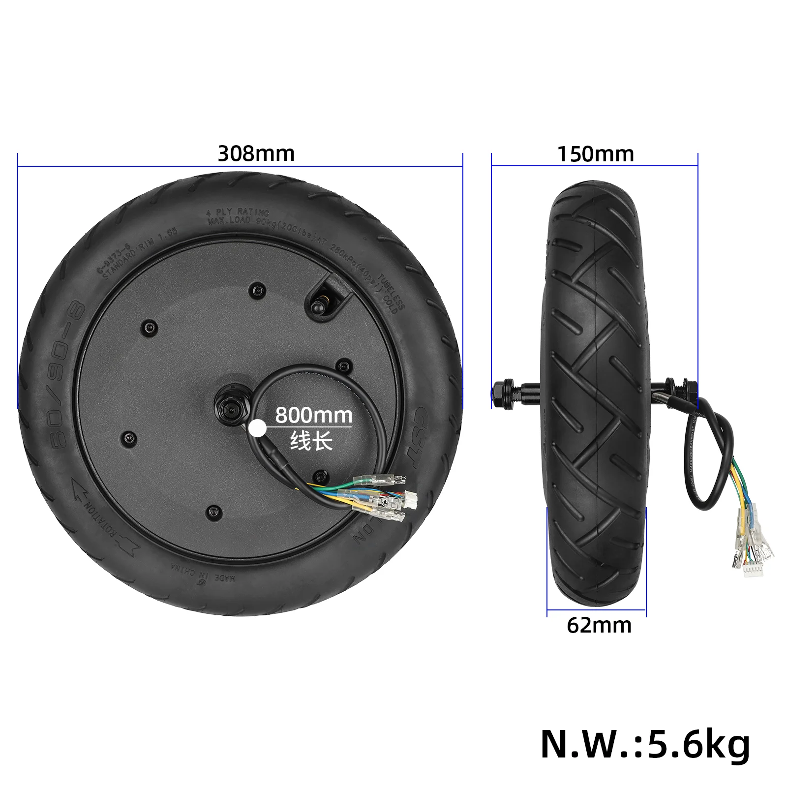 CST tubeless-däck i dimension 60/90-8. En färdig, körklar enhet som gör