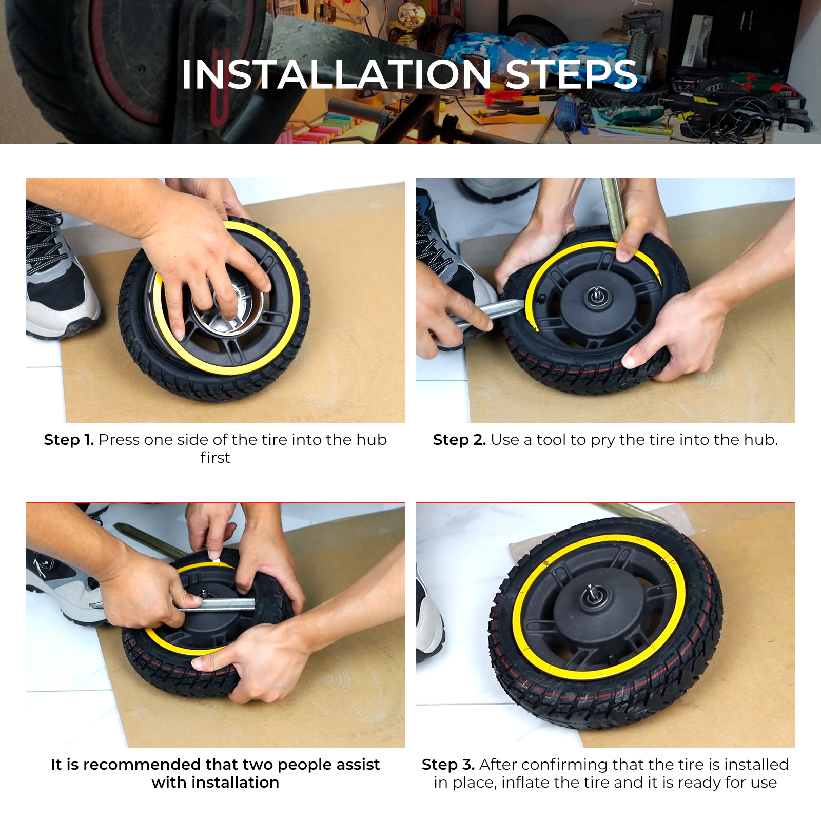 • Komfortabelt 10″ däck med bibehållen stötdämpning