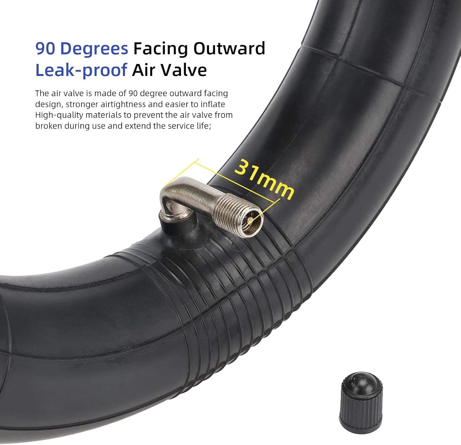 • 90×90° böjd ventil – enklare pumpning i trånga scooterfälgar